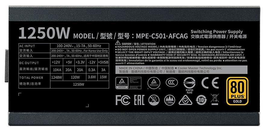 > Cooler Master MWE Gold V2 1250W 80+ Gold Fully Modular Power Supply