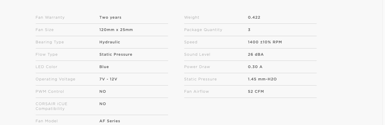 CORSAIR AF120 LED cooling fans combine bright LED lighting, strong static pressure, low noise, and high airflow to deliver great cooling performance anywhere in your PC.