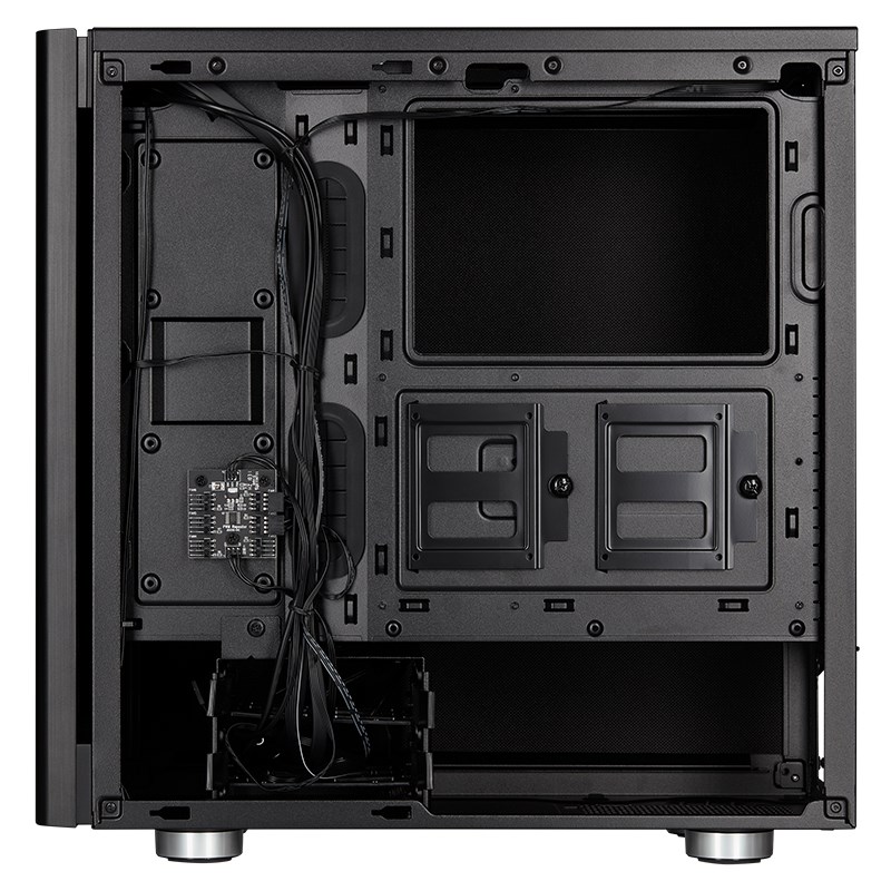 The CORSAIR Carbide Series 275Q is a low-noise mid-tower ATX case that matches minimalist design with whisper quiet operation. Built-in high-density sound damping panels in the roof and sides reduce noise from all your PC’s components, while an included PWM fan repeater allows you to control up to six PWM fans from a single header. Two included 120mm PWM fans and Direct Airflow Path™ design channel airflow to your PC’s hottest components, while room for a 360mm radiator in the front, 240mm radiator in the roof, and a 120mm radiator in the rear provide enormous cooling potential for even the most demanding system.