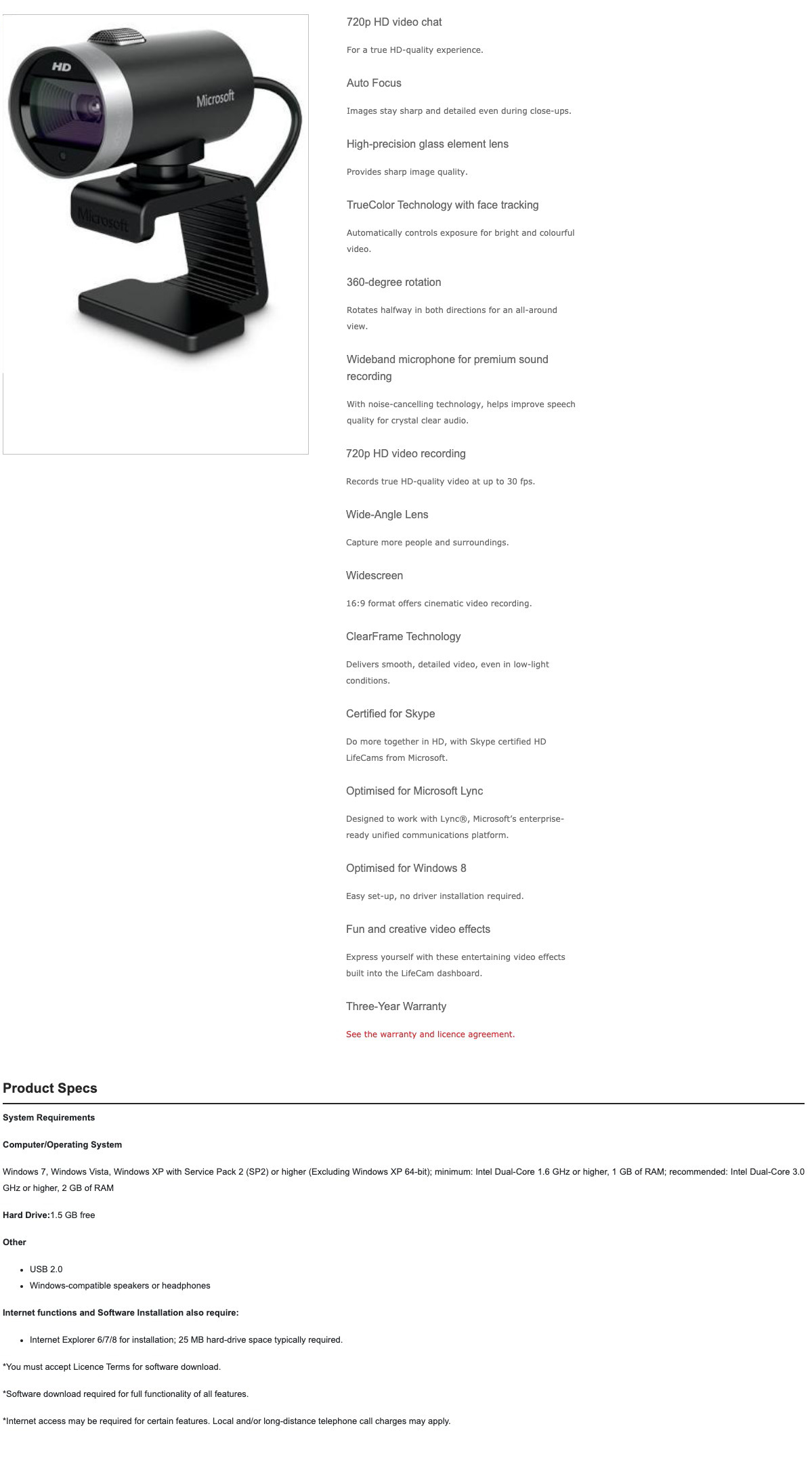 > Microsoft LifeCam Cinema HD Webcam (H5D-00016)