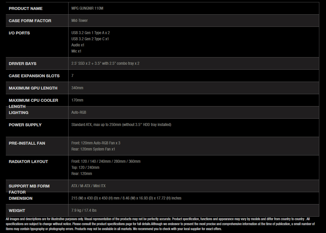 > MSI MPG GUNGNIR 110M Black ATX Case, T/G Window, No PSU